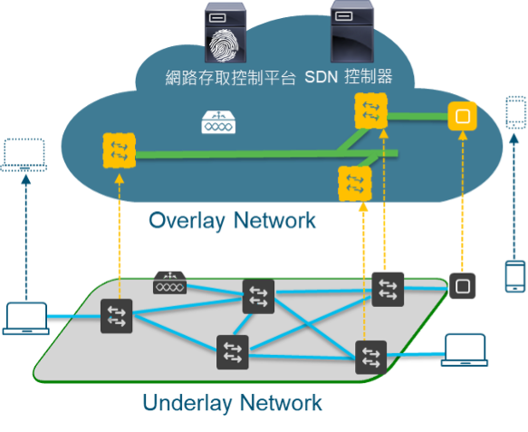 由實體網路設備組成,負責接收SDN控制器的指令並實際執行資料傳輸。 - 網路存取控制平台